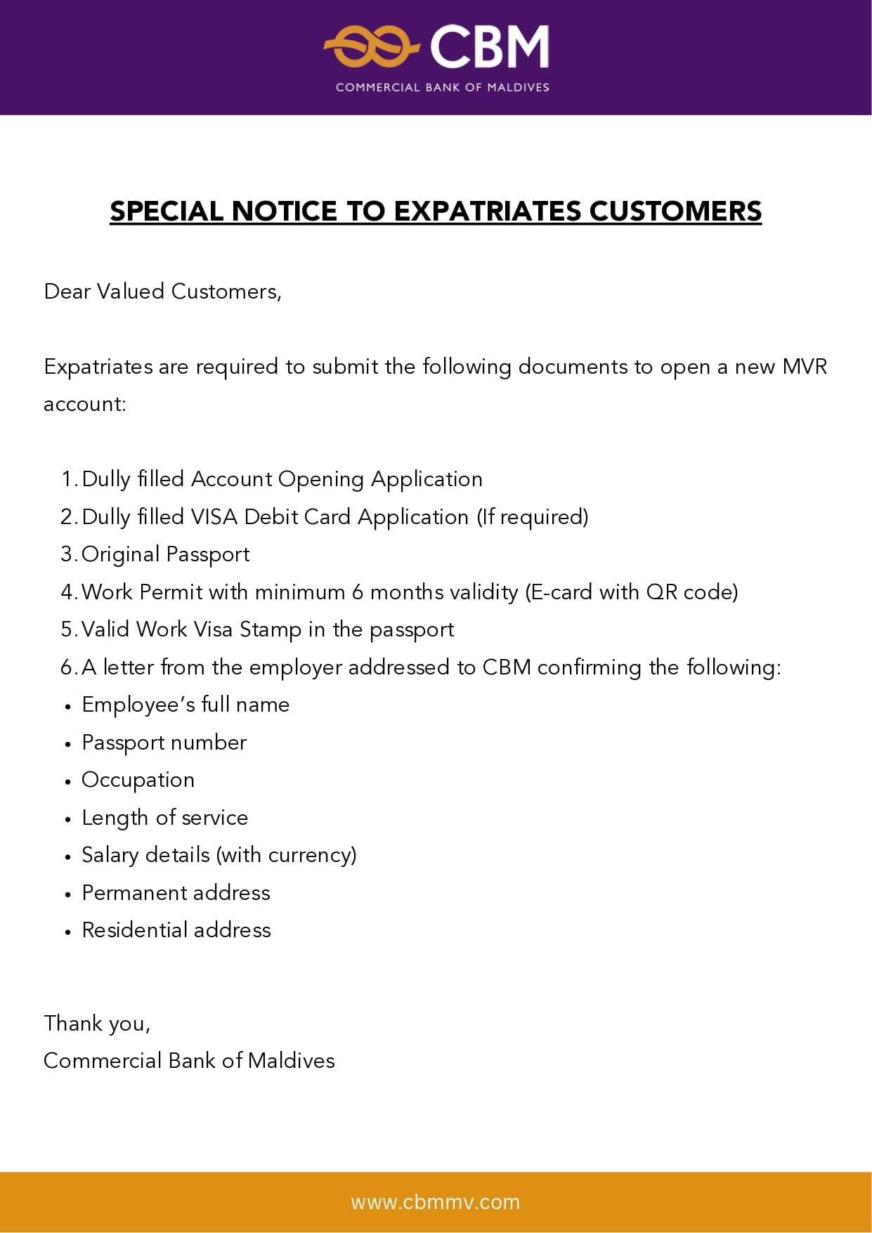 Special Notice to Expatriates Customers